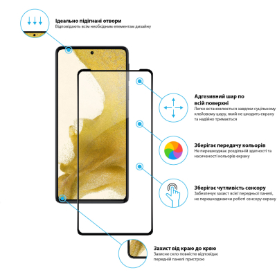 • Повний захист. Захищає всю передню панель пристрою, від краю до краю, не залишаючи помітних люзів.