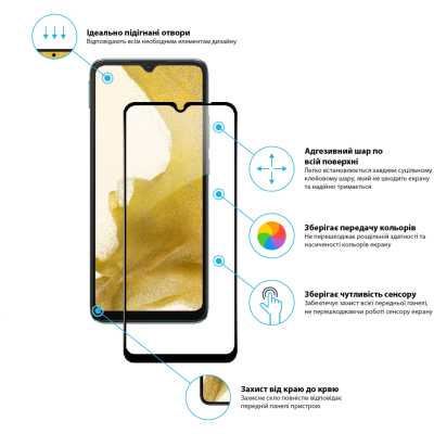 - Рівень міцності: 9H. Мінімізує ризик пошкодження передньої панелі мобільного пристрою під час повсякденного використання.