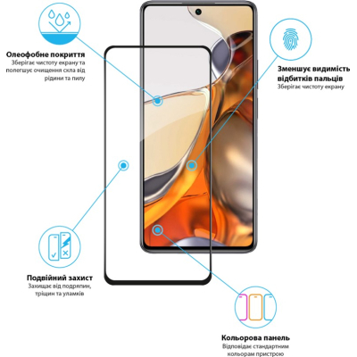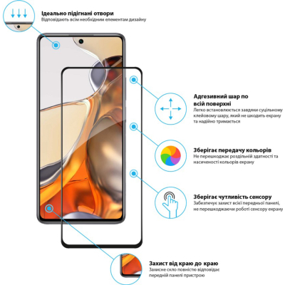 Захисне загартоване скло Full Glue Glass Protector — один із найкращих засобів для захисту не лише екрана, а й усієї передньої панелі мобільного пристрою, від краю до краю. Воно повністю повторює розміри та форму передньої панелі смартфона навіть з заокругленими краями, краї скла повторюють колір передньої панелі, тому скло майже невидиме для ока. Забезпечує максимальний захист від пилу та вологи, не залишаючи помітних прозорів, повітряних бульбашок або слідів клейового шару на екрані. Скло надійно оберігає від ударів або падінь.