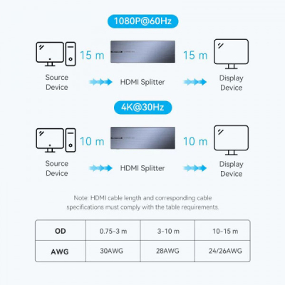 Спліттер Vention HDMI 1.4 UHD 4K 30Hz 3D, HDCP 1x8 ports (AKQB0-EU)