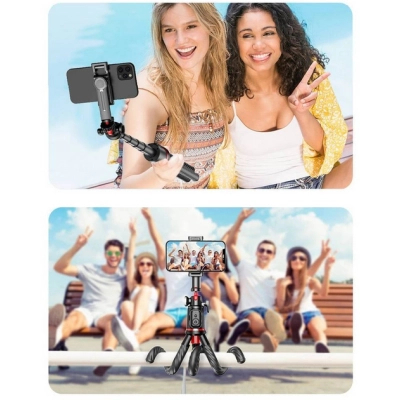- Висувна конструкція: Легко трансформується з компактного трипода в зручну селфі-палку.