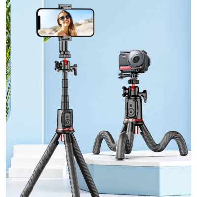 RTAKO C03: Гнучкий трипод-селфі-палка "Восьминіг" з обертовою на 360° знімною головкою – ідеальний для будь-якої зйомки! Представляємо вам універсальний та надзвичайно зручний трипод-селфі-палку RTAKO C03. Його гнучкі ніжки у формі восьминога дозволяють надійно фіксувати телефон на будь-якій поверхні – рівній, нерівній, обертати навколо стовпів чи гілок. Завдяки висувній конструкції, він легко перетворюється на селфі-палку для чудових автопортретів та групових фото. А знімна кульова головка з обертанням на 360° забезпечить вам повну свободу у виборі кута зйомки.