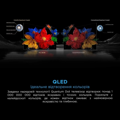 Телевізори TCL C7K оснащені технологією QD-MiniLED із точним зональним затемненням до 2048 зон, що забезпечує глибокий контраст і чітке відображення деталей навіть у найтемніших і найяскравіших сценах. Завдяки підтримці HDR із піковою яскравістю до 2000 ніт кольори виглядають насиченими, а картинка – природною. Технологія QLED додатково підсилює колірну гаму, роблячи відтінки більш живими та реалістичними.