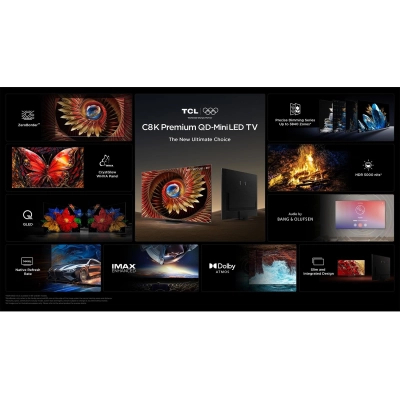 TCL C8K - це преміальна лінійка QD-MiniLED телевізорів, яка поєднує передові технології та стильний дизайн. Ці моделі створені для тих, хто цінує високу якість зображення, потужний звук і сучасний вигляд. Завдяки інноваційним рішенням, TCL C8K забезпечує кінематографічний досвід у вашій оселі.