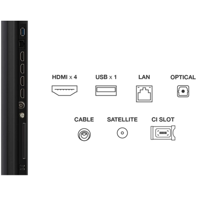 • 1 x RJ-45, 1 x оптичний аудіо, 4 x HDMI, CI, USB, Антенний