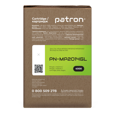 Тонер-картридж сумісний Ricoh MP2014 Green Label Patron (PN-MP2014GL) оптимальне рішення для лазерних принтерів та БФП. Основні властивості Детальна інформація: Що таке сумісний картридж? Кожен користувач друкувальної техніки стикається з питанням купівлі нового картриджа і знаходить досить велику кількість пропозицій. Як зробити правильний вибір? Розглянемо основні варіанти: Виробники друкувальних пристроїв (т.з. OEM виробники) наполягають на використанні оригінальних картриджів. Їх основний недолік - висока вартість. Сумісні картриджі виробляються різними компаніями - сторонніми виробниками. Вони дають можливість істотно заощадити на друці, проте питання оптимального балансу між якістю друку, ціною, гарантією та ресурсом картриджа залишається вибором Покупця. Тонер-картридж сумісний Ricoh MP2014 Green Label Patron (PN-MP2014GL) гарантія Ми гарантуємо 12 місяців справної роботи картриджа та проведемо заміну продукції з виробничим дефектом. Якість друку Картриджі серії Patron Green Label виготовляються з використанням нових корпусів та повністю придатні для повторної заправки. Основна відміна серії Patron Green Label від картриджів низького цінового сегменту – якість комплектуючих, що забезпечує високу оптичну щільність друку, а також ресурс, аналогічний оригінальному картриджу. При виробництві картриджів Patron Green Label виробник дотримується загального стандарту ISO 9001:2015 і спеціальні стандарти, що використовуються в індустрії друку - ISO 19752:2017 для монохромних картриджів ISO 19798:2017 - для кольорових картриджів, а також STMC стандарт для контролю ресурсу. Захист навколишнього середовища Виробництво картриджів Patron Green Label відбувається з виконанням вимог міжнародного стандарту по захисту навколишнього середовища - ISO 14001:2015. Залишки матеріалів і комплектуючих, що використовуються для виробництва картриджів Patron Green Label, передаються на утилізацію відповідно Закону України "Про відходи". Для виробництва картонної упаковки ми використовуємо перероблені матеріали з нанесенням мінімальної кількості фарби. А конструкція коробки для картриджа дозволяє кілька разів відкривати і закривати його на "замок" для транспортування в сервісний центр. Ми закликаємо до нанесення мінімального впливу на довкілля. Тому заправляйте і відновлюйте картриджі Patron Green Label. Тонер-картридж сумісний Ricoh MP2014 Green Label Patron (PN-MP2014GL) економія на офісному друці Вартість картриджів серії Patron Green Label в середньому на 70-80% нижче оригінальних витратних матеріалів. Оптимальне співвідношення ціна-якість робить дану продукцію хорошим вибором для Клієнтів, що бажають заощадити на друці і не прогадати з якістю. Зовнішній вигляд Ми потурбувалися про те, щоб упаковка картриджа була не лише екологічною, функціональною, мала мінімально можливі фізичні розміри, але і містила усю необхідну інформацію. На зеленій етикетці знаходиться інформація про картридж, його сумісність з друкувальними пристроями, номер партії, дата виготовлення, контакти виробника, а також номер телефону безкоштовної гарячої лінії для українських споживачів. Сподіваємось, що наведена інформація дозволить Вам зробити правильний вибір. Ваш друк – наша турбота! Оптимальний варіант для користувача, що хоче заощадити;При виробництві картриджа використовується новий корпус;Гарантований ресурс;Економія 70-80% у порівнянні з оригінальними витратними матеріалами