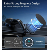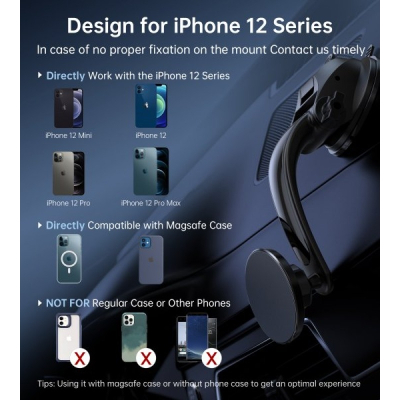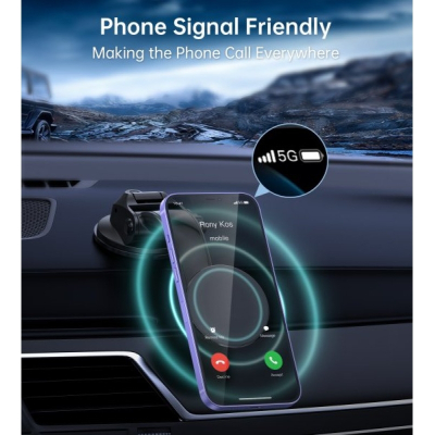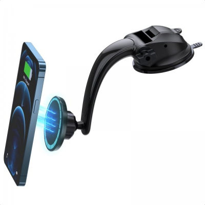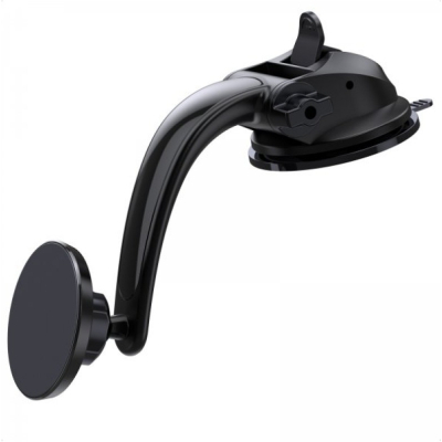 Тримач оснащений вакуумною присоскою, яка легко встановлюється на лобове скло та забезпечує стабільність фіксації. Конструкція дозволяє обертати телефон на 360° та регулювати кут огляду для максимальної зручності водія. Магнітні кільця у комплекті не заважають заряджати смартфон, а матеріали високої якості (пластик, полікарбонат, магніт і гумова присоска) гарантують тривалий термін служби аксесуара.