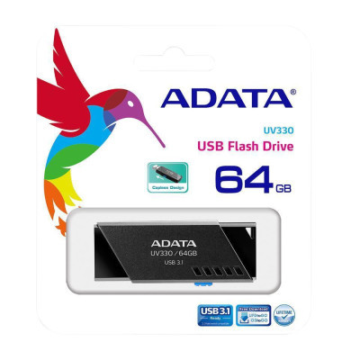 USB Флеш-накопичувач ADATA UV330 оснащений USB-роз'ємом, що плавно висувається з накопичувача одним рухом великого пальця.