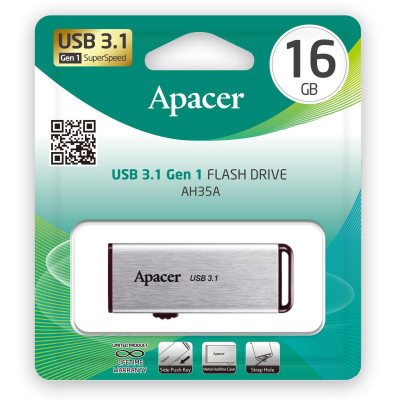 USB флеш накопичувач Apacer 16GB AH35A Silver USB 3.1 Gen1 (AP16GAH35AS-1)