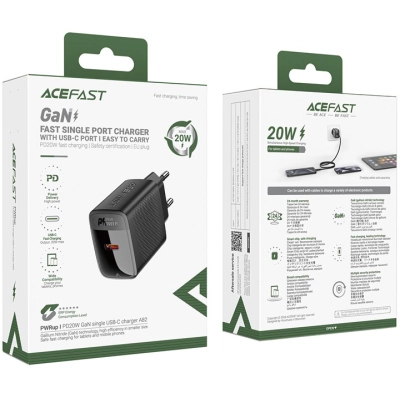 Мережевий зарядний пристрій Acefast A82 PD20W GaN single USB-C charger Black — є компактним та потужним пристроєм для швидкої зарядки вашого телефону або смартфона. Завдяки технології GaN, воно забезпечує швидку та ефективну зарядку з меншим споживанням енергії. Цей пристрій є не тільки потужним, але й дуже зручним у використанні та переносі.