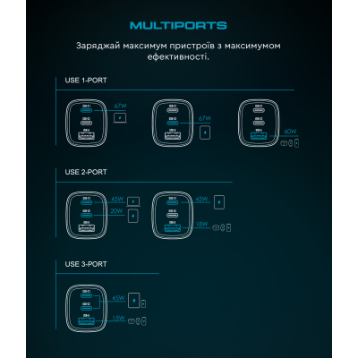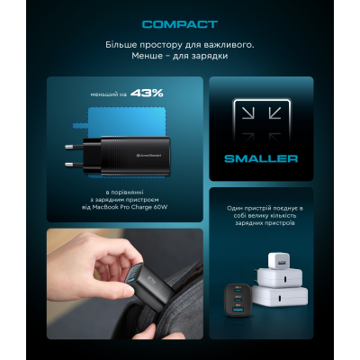 Живлення - мережа, тип вихідного підключення - USB Type-C, USB, 67 Вт, швидка зарядка - Quick Charge 3.0, Power Delivery 3.0, чорний