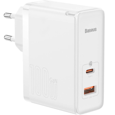 Baseus GaN5 Pro Fast Charger - це нове покоління ефективних зарядних пристроїв на основі напівпровідників з нітриду галію GaN. Використання нових матеріалів дало змогу зменшити вагу та габарити зарядного без шкоди для його характеристик. Зарядний пристрій має два порти: USB-A і USB-C. Його загальна вихідна потужність становить 100 Вт. Підтримує стандарти швидкого заряджання, включно з найпопулярнішими: Power Delivery, Quick Charge QC4.0+, AFC (Samsung) Зарядний пристрій призначений для роботи з більшістю популярних пристроїв із живленням від USB, як-от планшети, iPhone, телефони Android, ноутбуки тощо.