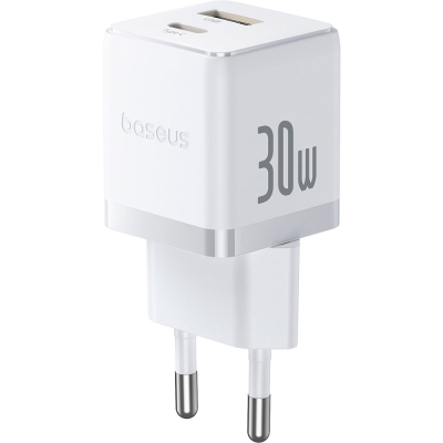 Зарядний пристрій Baseus 1xUSB-C 30W + 1xUSB white (P1011160A213-00)