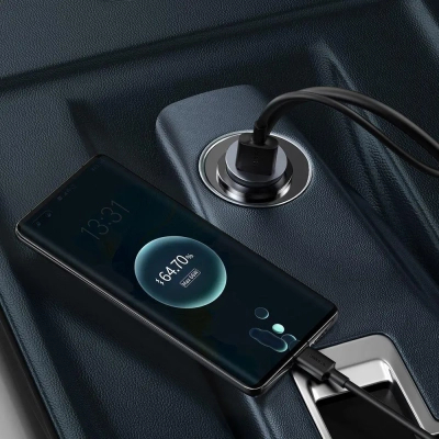 Тип - адаптер, Живлення - прикурювач автомобіля, Призначення - універсальне, тип вихідного підключення - USB, Max - 3 А, 2 A, 120 Вт, кількість USB портів - 2 x USB, швидка зарядка - Power Delivery, Quick Charge 3.0, сірий