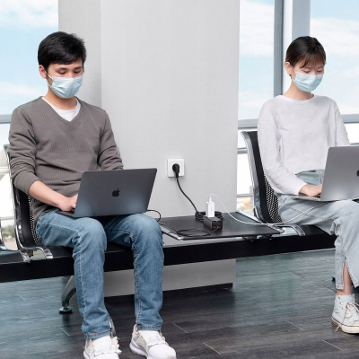 - 100-240 В та частота напруги 50-60 Гц, що гарантує можливість використання по всьому світу. Чотири порти + Розетка. Можна одночасно заряджати чотири пристрої, такі як смартфон, навушники Bluetooth, динаміки, ноутбук, і підключати до розетки монітор або принтер економлячи при цьому час і місце. Це ідеально підходить для сімей - вам більше ніколи не доведеться сперечатися про пріоритет підключення телефону.