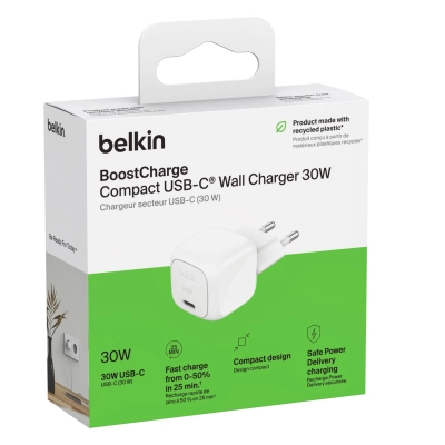 Зарядний пристрій Belkin USB-C PD30W PPS white (WCA008KQWH)