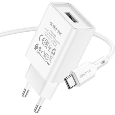 Зарядний пристрій BOROFONE BA68A Glacier USB + cable USB to USB-C 10.5W White (6974443385731)