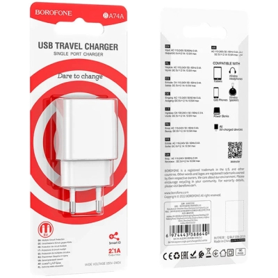 Мережевий зарядний пристрій Borofone BA74A USB гарантує швидку і безпечну зарядку для будь-якого смартфона. Ця модель відрізняється своєю високою якістю виконання та надійністю, що підтверджується відповідністю вимогам міжнародних сертифікаційних агентств.