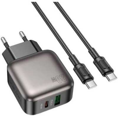 Мережевий зарядний пристрій Borofone BAS53A Absolute Single-Port PD20W Charger Set (C to C) (EU) Black — це високоякісний зарядний пристрій із одним портом USB Type-C, призначений для швидкого та безпечного заряджання сучасних гаджетів. У комплект входить кабель Type-C to Type-C, який дозволяє заряджати смартфони, планшети, навушники та інші пристрої з підтримкою технології Power Delivery (PD).