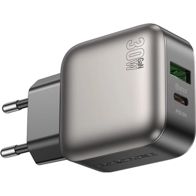 Мережевий зарядний пристрій BOROFONE BAS55A Absolute має один порт Type-C та один порт USB-A для ефективного заряджання ваших девайсів. Він сумісний з багатьма сучасними пристроями: повербанками, смартфонами, планшетами, акустичними системами різних виробників. Максимальна вихідна потужність адаптера становить 30 Вт.