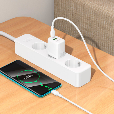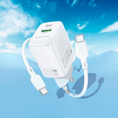 Мережевий зарядний пристрій Borofone BN27 Fuente PD20W + QC3.0 Charger Set (C to C) (EU) White – це комплект, що включає зарядний пристрій із двома портами (USB Type-C + USB-A) та кабель Type-C to Type-C. Пристрій підтримує швидкі стандарти зарядки PD20W (Power Delivery) і QC3.0 (Quick Charge), дозволяючи швидко та безпечно заряджати ваші пристрої.