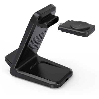 Бездротовий зарядний пристрій 3-в-1 15W чорний Choetech (T608-F) забезпечує швидке та безпечне заряджання пристроїв.