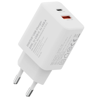 Зарядний пристрій DIGITUS DA-10300 поєднує компактний формат і сучасні інтерфейси USB-C та USB-A. Потужність до 20 Вт дозволяє заряджати смартфони, аксесуари та інші мобільні пристрої. Підтримується одночасне підключення двох гаджетів зі збалансованим розподілом енергії. Корпус виготовлений із переробленого матеріалу, що підкреслює увагу до екологічних рішень. Підходить для щоденного використання вдома, в офісі або в дорозі.