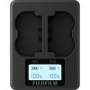 Зарядний пристрій для акумуляторів FUJIFILM BC-W235, яке здатне заряджати дві батареї NP-W235 одночасно. Вбудований екран з підсвічуванням для контролю стану зарядки кожної батарей.