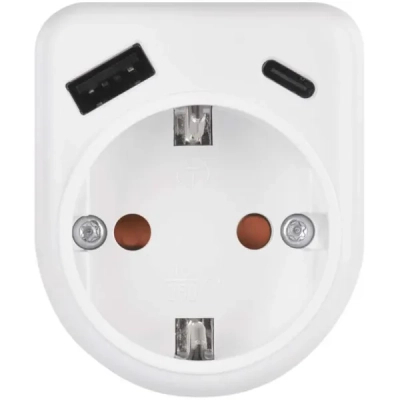 EMOS P0075 - це адаптер-розетка, що об'єднує стандартну електричну розетку (2-полюс + PE) з двома USB-портами (USB-A і USB-C). Ідеальне рішення для дому або офісу - все в одному компактному корпусі.