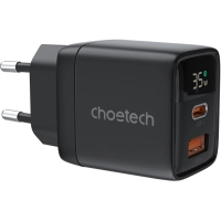 Зарядний пристрій Choetech 1xUSB + 1xUSB-C PD35W with display black (PD6052-EU-BK)