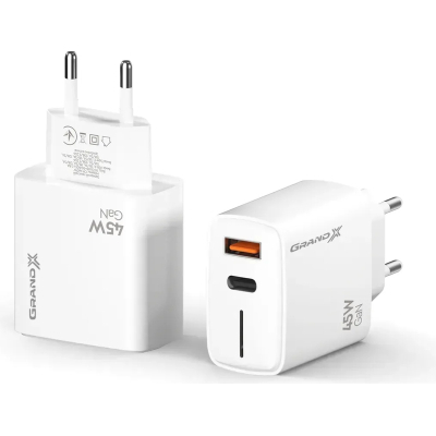 Живлення - мережа, тип вихідного підключення - USB, Max - 3 А, 45 Вт, кількість USB портів - 2 x USB, швидка зарядка - Power Delivery, Quick Charge 2.0, Quick Charge 3.0, Power Delivery 3.0, Quick Charge 3.2, білий