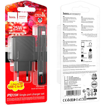 Мережевий зарядний пристрій HOCO CS24A Puerto оснащений портом Type-C для ефективного заряджання ваших девайсів.
