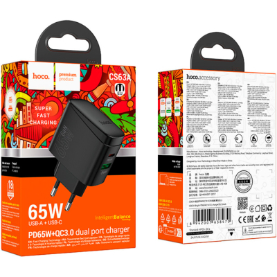 Мережевий адаптер Hoco CS63A — це потужний пристрій для провідного заряджання сучасних гаджетів. Адаптер оснащений роз’ємом USB та додатковим Type-C, що дозволяє заряджати два пристрої одночасно. Завдяки потужності до 65 Вт і силі струму 3.0А він забезпечує стабільне та ефективне заряджання, підходячи для смартфонів, планшетів та інших пристроїв.