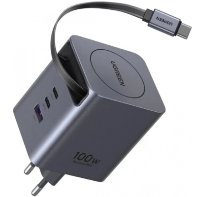 Зарядний пристрій Ugreen USB-C PD100W GaN + cable USB-C to USB-C retractable (65828)