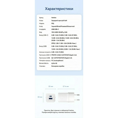Тип - адаптер, Живлення - мережа, Призначення - для планшета, для фітнес-браслета, для рацій, для геймпада, для екшн-камер, для смарт годинника, для TWS навушників, для телефону, тип вихідного підключення - USB Type-C, USB, Max - 3 А, 30 Вт, кількість USB портів - 1 x USB, 1 x USB Type C, швидка зарядка - Programmable PowerSupply (PPS), Quick Charge 3.0, Power Delivery 3.0, білий