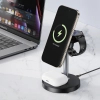 Тип - бездротовий зарядний пристрій, Живлення - USB, Призначення - для смарт годинника, для TWS навушників, для смартфона, тип вихідного підключення - MagSafe, Max - 2 А, 15 Вт, швидка зарядка - Wireless Fast Charge, чорний