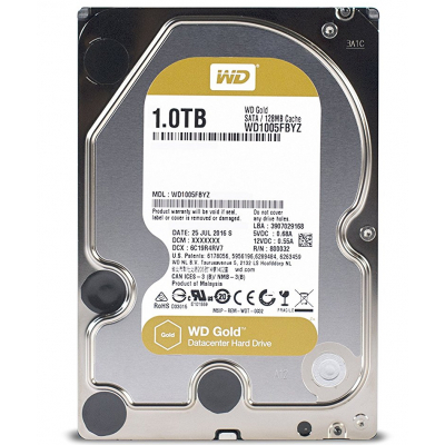 1 TB, 7200 об/хв, 128 MB, SATA III, 3,5", WD Gold, 184 МБ/с, напрацювання на відмову 2 млн. годин, 8.1 Вт, 28 дБ